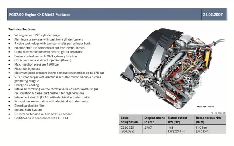Not all OM642 engines are identical. Mercedes produced several variants over the engine’s 17 year production run, each with different emissions systems, power output, and weak points. Identifying which variant you have is the first step to understanding what problems to watch for.